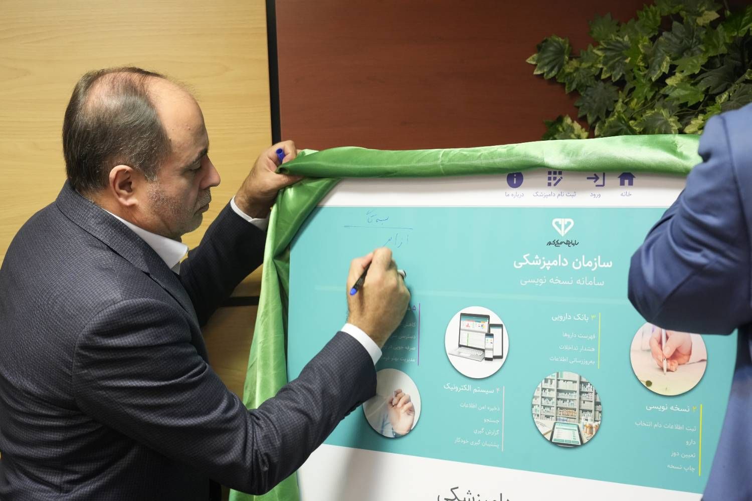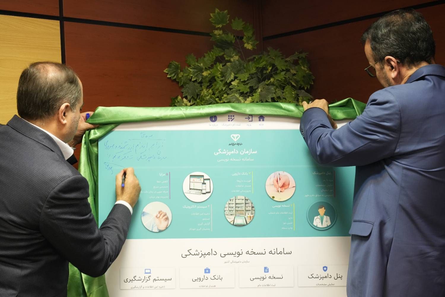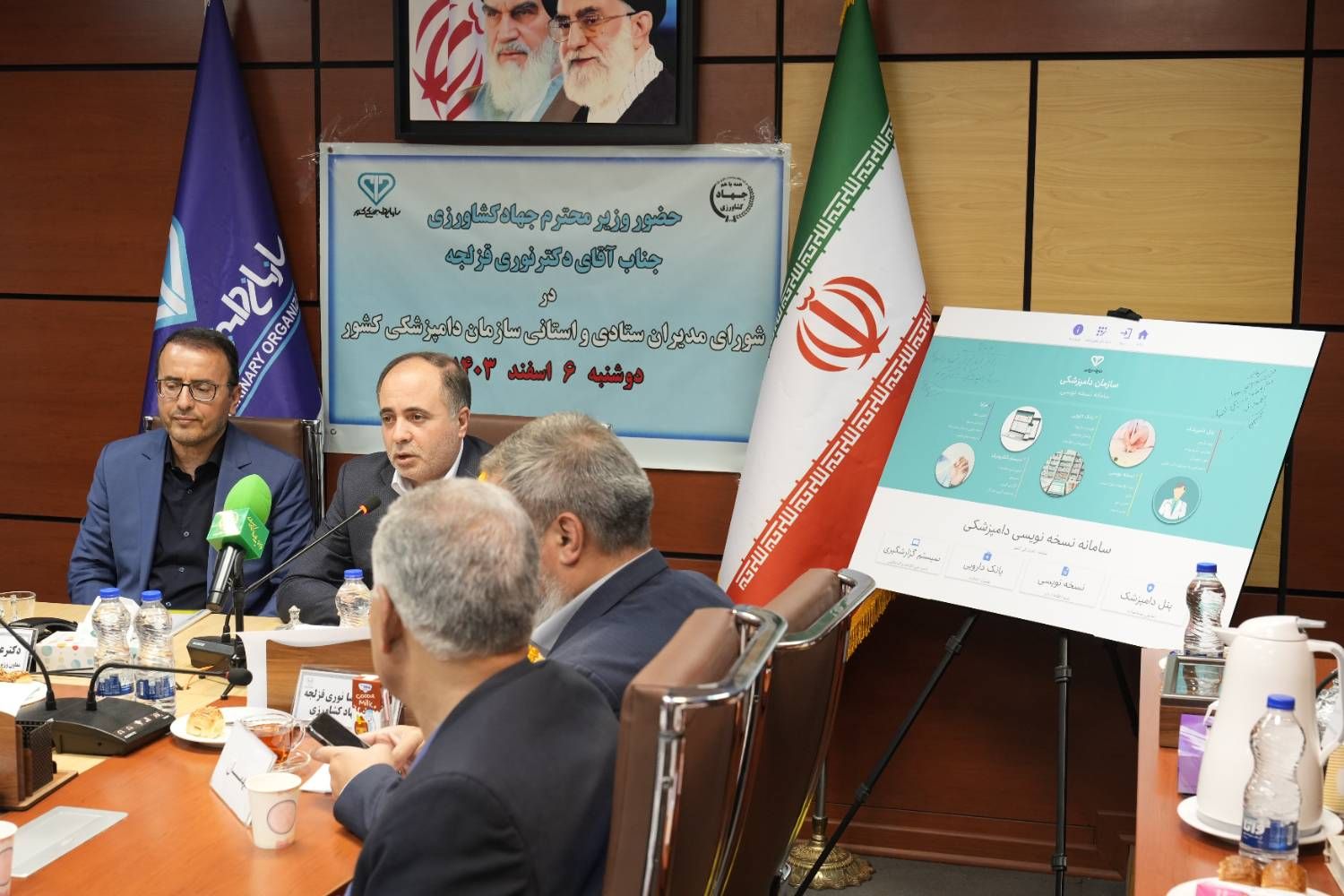 لازم به ذکر است پیش از سخنان وزیر جهاد کشاورزی، دکتر رفیعی پور، رئیس سازمان، حجت الاسلام رنجبران نماینده ولی فقیه، دکتر قریب مسئول امور استان ها و دکتر مهدوی نژاد معاون تشخیص و درمان سازمان دامپزشکی کشور به تشریح بخشی از شرایط موجود و مشکلات پیش روی دامپزشکی پرداخته و پس از آن سامانه نسخه نویسی الکترونیکی دامپزشکی رونمایی شد.