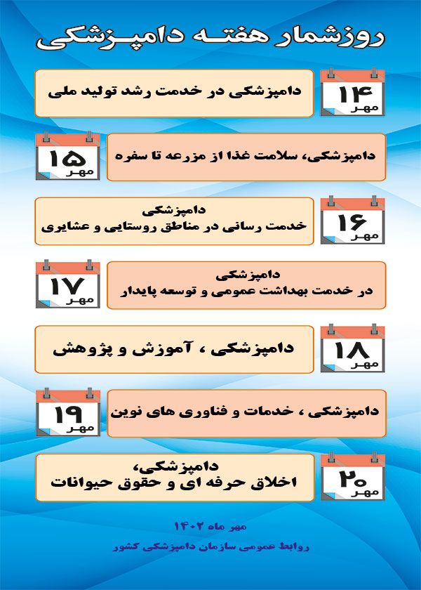 بنا به این گزارش، روزهای هفته دامپزشکی به شرح زیر نامگذاری شده است؛