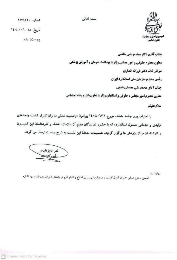 قانون برنامه هفتم فرصتی بزرگ برای ساماندهی و توانمندسازی مسئولین فنی بهداشتی است