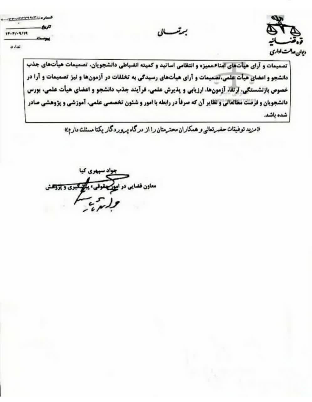 شرط خروج از صلاحیت: موارد فوق تنها در صورتی خارج از صلاحیت دیوان هستند که صرفاً در رابطه با امور و شئون تخصصی علمی، آموزشی و پژوهشی صادر شده باشد.