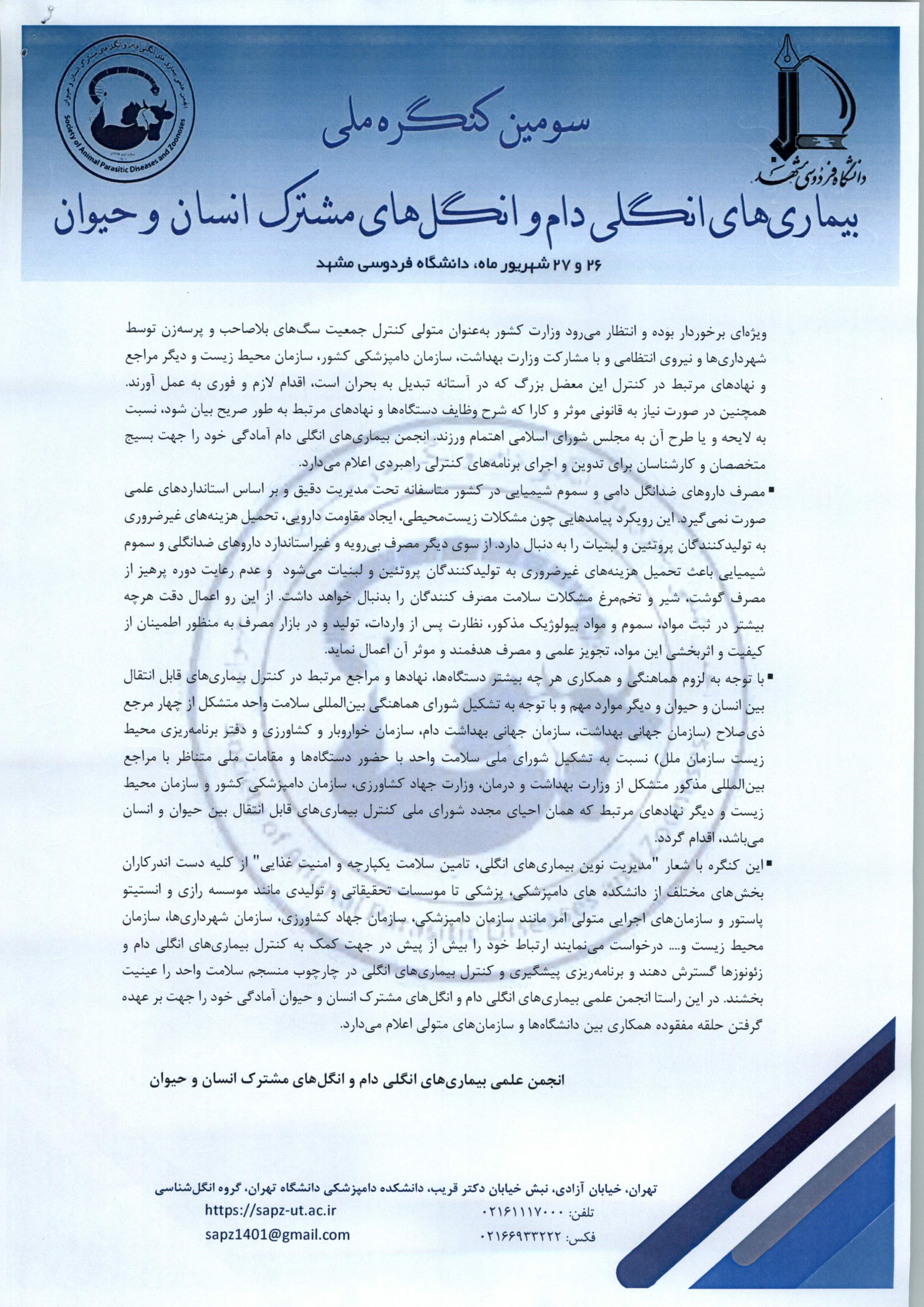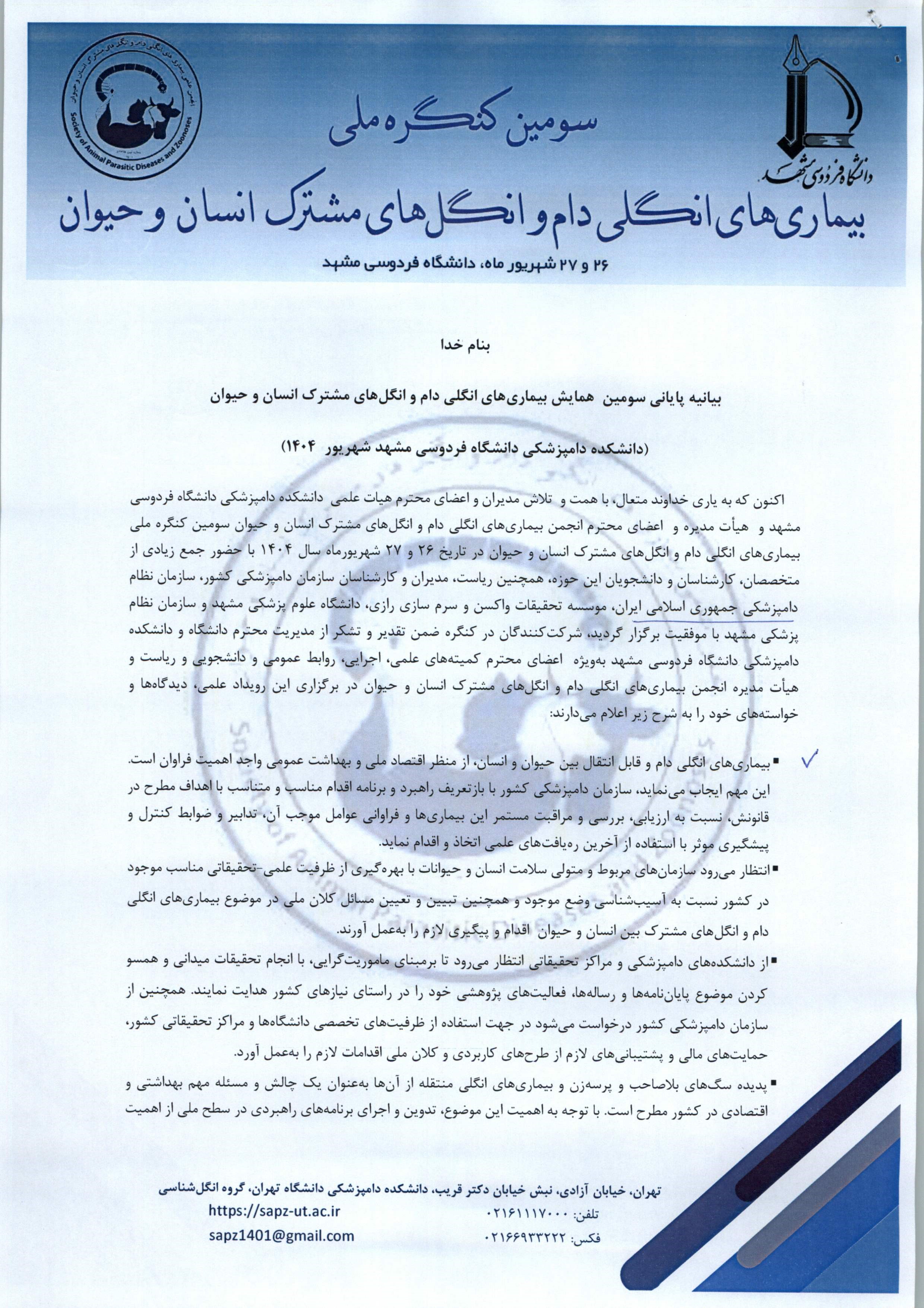 به گزارش فاخته، در بیانیه منتشر شده از سوی «انجمن علمی بیماریهای انگلی دام و انگلهای مشترک انسان و حیوان» آمده است: