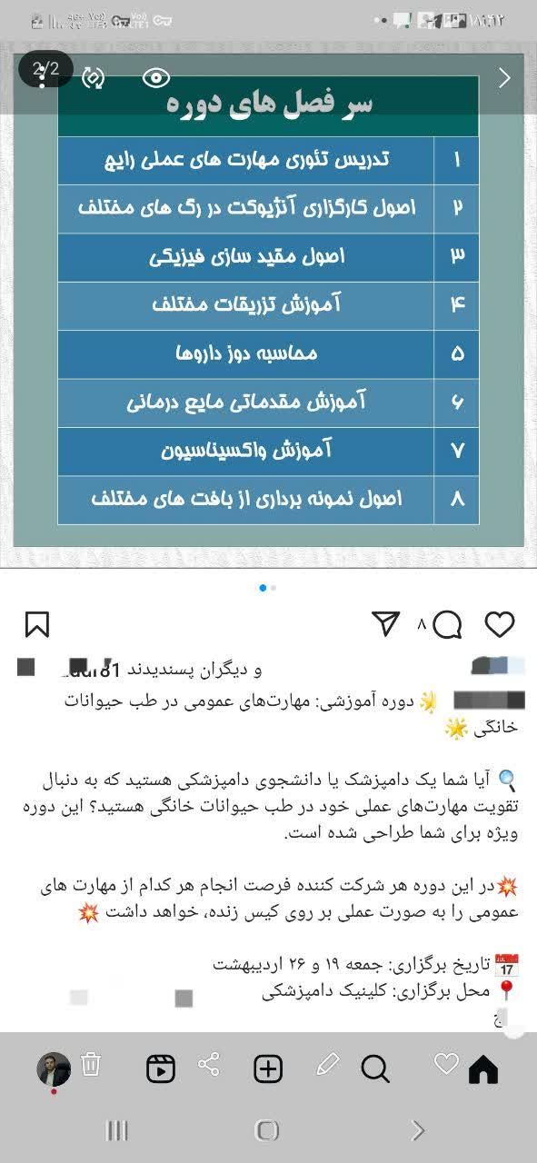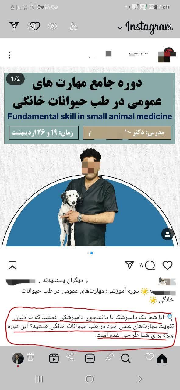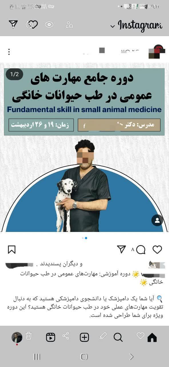 در فضای پرشتاب شبکههای اجتماعی، بهویژه اینستاگرام، جایی که هر روز دورهای نو و عنوانی فریبنده پدیدار میشود، گروهی خاص با هدفی کاملاً اقتصادی اما با نقاب آموزش، فعالیت گستردهای را آغاز کردهاند. نمونهای عینی از این روند را میتوان در یک صفحه اینستاگرامی خاص دامپزشکی دید که با ظاهری شکیل و حرفهای، خود را برگزارکنندهی دورههای تخصصی دامپزشکی معرفی میکند.